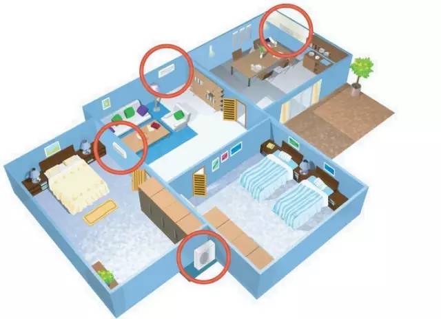 ① 同一系統(tǒng)的室內(nèi)機(jī)使用一個(gè)空開;